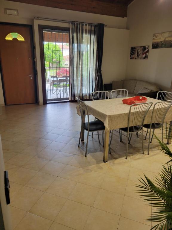 Goditi il patio, il giardino e le zone pranzo all’aperto di Casa Lorena, il tuo appartamento vacanze a Desenzano del Garda vicino al Lago di Garda.